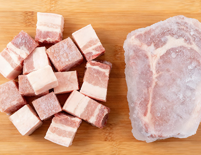 本机器设备适用于零度至零下五度的猪肋排、冻肉、边鸡边鸭切片切块一次成型。加厚不锈钢方管机架。优质304#不锈钢外壳符合食品级要求,独立送料机构模块,可快速拆卸清洗,防水电控箱。独立的安全保护罩及安全保护开关,自动润滑系统,缺油自动报警、快速侧开。