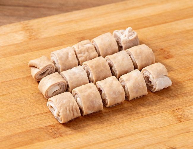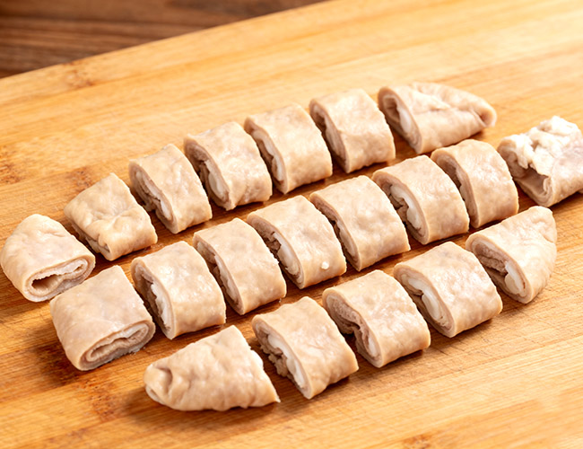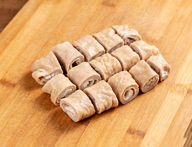 The large intestine/small intestine segmenting machine is a piece of equipment specifically designed for cutting intestinal food into specific length segments. It can quickly and efficiently complete the segmenting process, significantly enhancing production efficiency. The cutting lengths are uniform and consistent, ensuring the quality and uniformity of the products. It is made of materials that comply with food processing hygiene standards, is easy to clean and maintain, and ensures the safety of the food. The operation is simple and straightforward, allowing for easy and smooth operation.